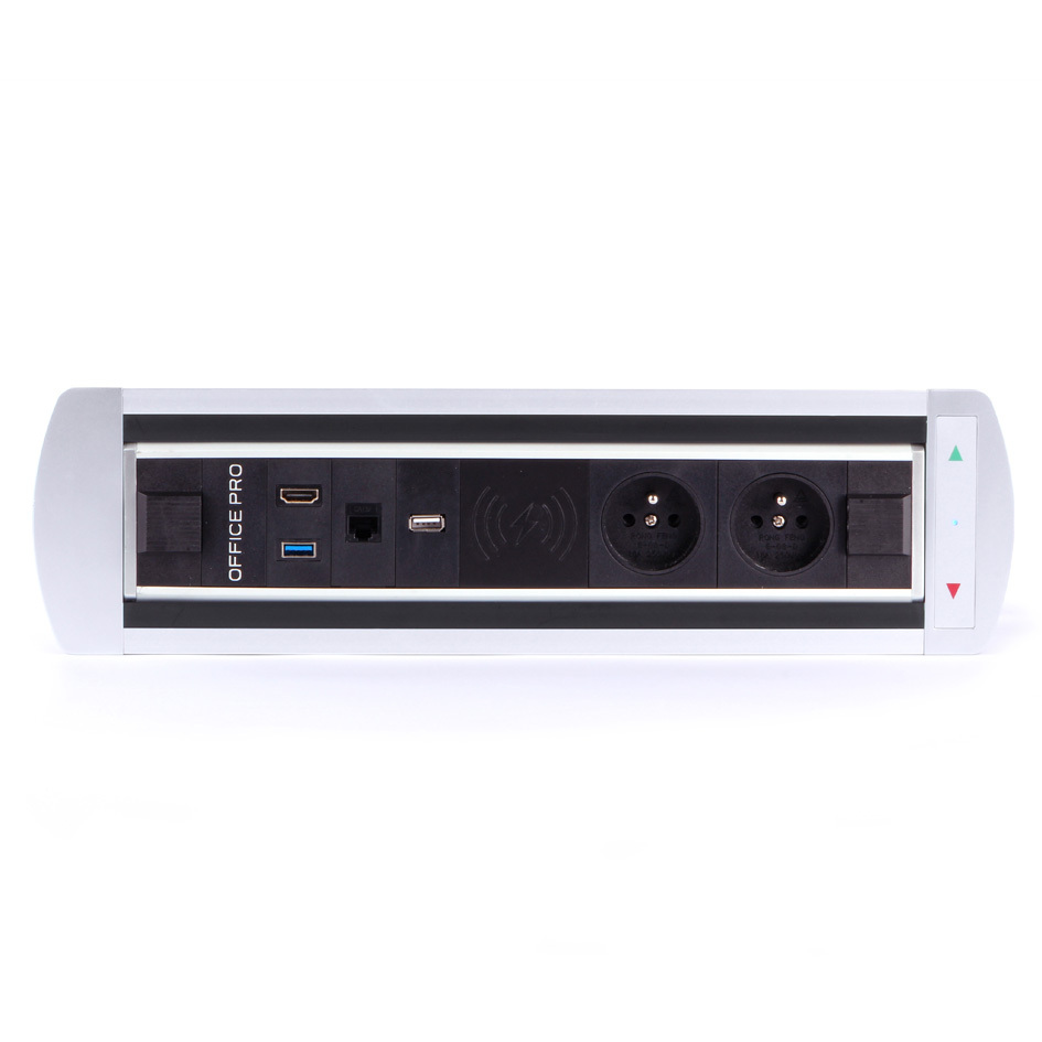 Elektrický otočný panel, 3x elektrická zásuvka, 1x data, VGA, USB 3.0, HDMI