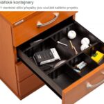 Zásuvky jsou z plastu, který je snadno omyvatelný a vhodný pro jednoduchou údržbu. Čela zásuvek jsou vytvořena z kvalitní dřevotřískové desky o tloušťce 18 mm a jsou také vybavena odolnou 2 mm ABS hranou, která garantuje dostatečnou ochranu proti mechanickému i dynamickému poškození. Praktickou součástí vrchní zásuvky je přehledný organizér a prostorové dělící příčky. Vaše tužky, sponky a další kancelářské potřeby budou vždy srovnané. Tyto praktické doplňky můžete dokoupit i samostatně.