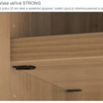 Pro jejich výrobu jsme zvolili kvalitní laminovanou dřevotřískovou desku, kterou nabízíme v osmi barevných odstínech. Půda i dno mají tloušťku 25 mm a na přední straně disponují 2 mm ABS hranou, díky níž se nemusíte bát mechanického poškození. Ostatní viditelné hrany korpusu jsou chráněny ABS hranou o tloušťce 1 mm. Boky korpusů nabízíme v tloušťce 18 mm, záda potom 6 mm. Ta jsou navíc oboustranně pohledová, takže skříně můžete použít jako prostorový dělící prvek. Odolné materiály a kvalitní kování pocházející výhradně z Evropské unie, důmyslná konstrukce a přesná výroba zajišťuje absolutní pevnost skříní Strong.