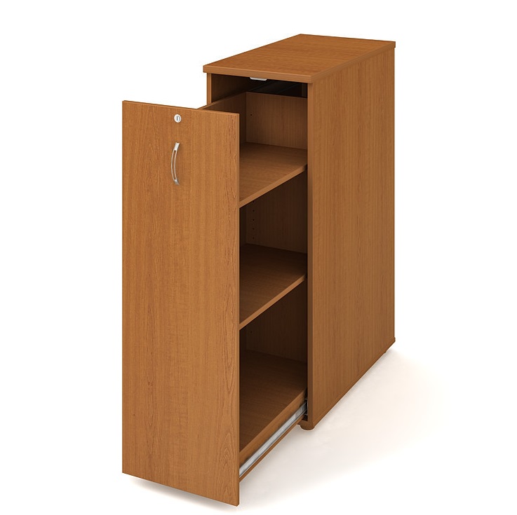Základní výška úložného prostoru je přizpůsobena výšce standardního šanonu. V případě potřeby lze ale velice jednoduše měnit polohu polic a prostor přizpůsobit podle svých požadavků. Protože dbáme na bezpečnost našeho nábytku a vyžadujeme, aby splňoval bezpečnostní normy, zabezpečili jsme police proti náhodnému vysunutí. Také police skříní jsou olepeny odolnou 2 mm ABS hranou, která garantuje dostatečnou ochranu proti poškození.