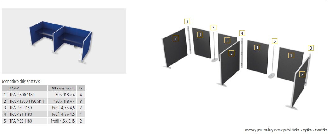 spoj. Příčkové paravány nabízíme ve dvou výškách. Výška 118 cm umožňuje napojení na stolové paravány ve stejné výškové linii. Výška 156,5 cm zvyšuje akustickou účinnost snižování hluku.