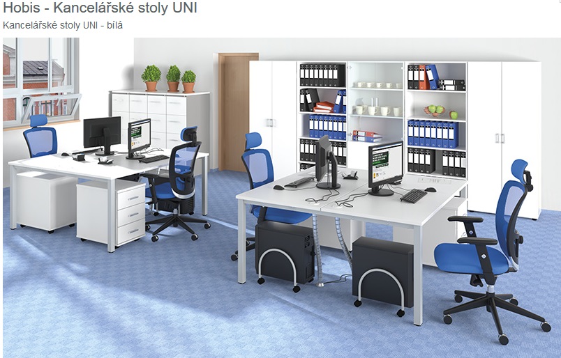 Pracovní desky stolů řady HOBIS Uni tvoří jednoduché rovné linie. Pro zajištění co nejvyššího komfortu jsou v nabídce i rohové pracovní stoly s ergonomicky tvarovanými deskami, které odpovídají normě ČSN EN 527–1. Pracovní deska stolu má tloušťku 25 mm a je vybavena 2 mm ABS hranou, která stoly pomáhá chránit před poškozením. O kabely od PC či stolní lampy se postará praktická průchodka, která kabely jednoduše svede pod desku, kde si s nimi poradí chytře zkonstruované držáky. Budete tak mít jistotu, že se kabely nezapletou a nebudou vám překážet při práci. Konstrukce stolů splňuje vysoké nároky na kvalitu a ergonomii (ČSN EN 527–1) a odpovídají tak normám ČSN EN 527–2, ČSN 910001, ČSN 910100, ČSN EN 12521 a ČSN EN 15372.