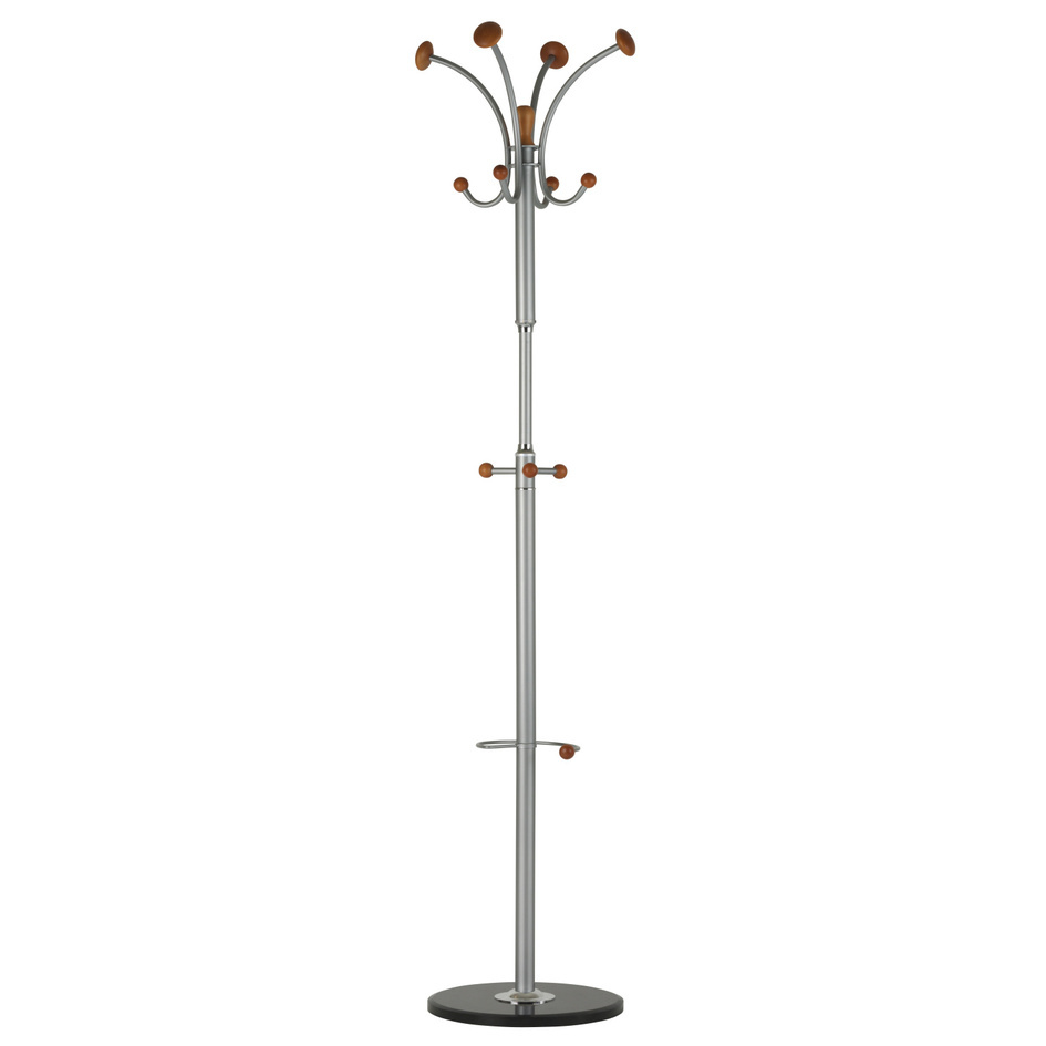 Věšáky: kombinace kovu, dřeva a mramoru. ­kovové části v odstínu hliník – RAL 9006. ­Těžká mramorová základna zajišťuje stabilitu věšáku